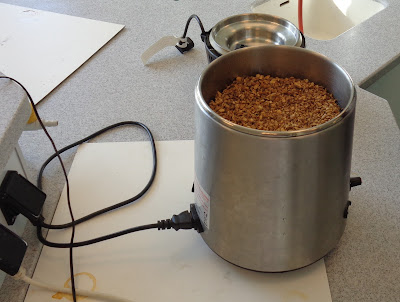 Afgelopen week hebben mijn leerlingen de na de eerste iets te korte destillatie de gedroogde gember opnieuw gedestilleerd. Hiervoor hebben ze gebruik gemaakt van een Smartstill. Dit om te kijken of er nog meer gember etherische olie gemaakt kon worden. Om daar zeker van te zijn hebben de leerlingen een destillatietijd van 3 uur aangehouden.