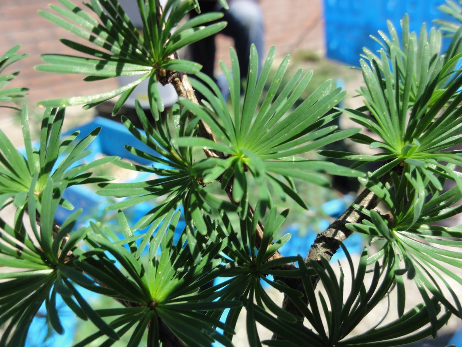 We hebben deze dag 15,5 lariks takjes gehakseld en een deel van de naalden (3kg) is van de takjes geritst.
