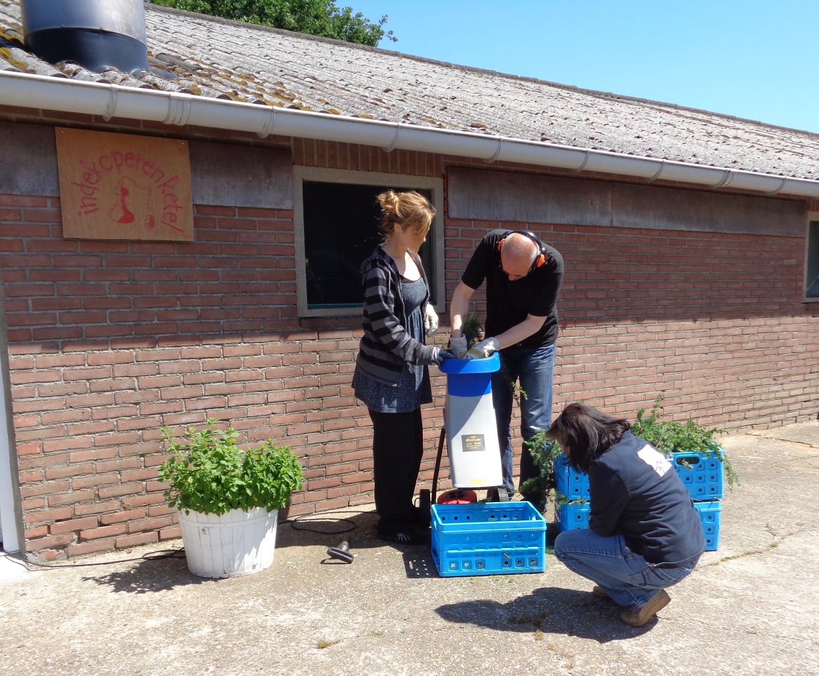 Maar naast deze opbrengst heb ik 2 enthousiaste meewerkers gehad die de nodige kennis over het stoomdestilleren hebben opgedaan. Het was zoals Catharina op haar website schrijft: genieten naast de ketel , en zeker voor volgend jaar voor herhaling vatbaar!