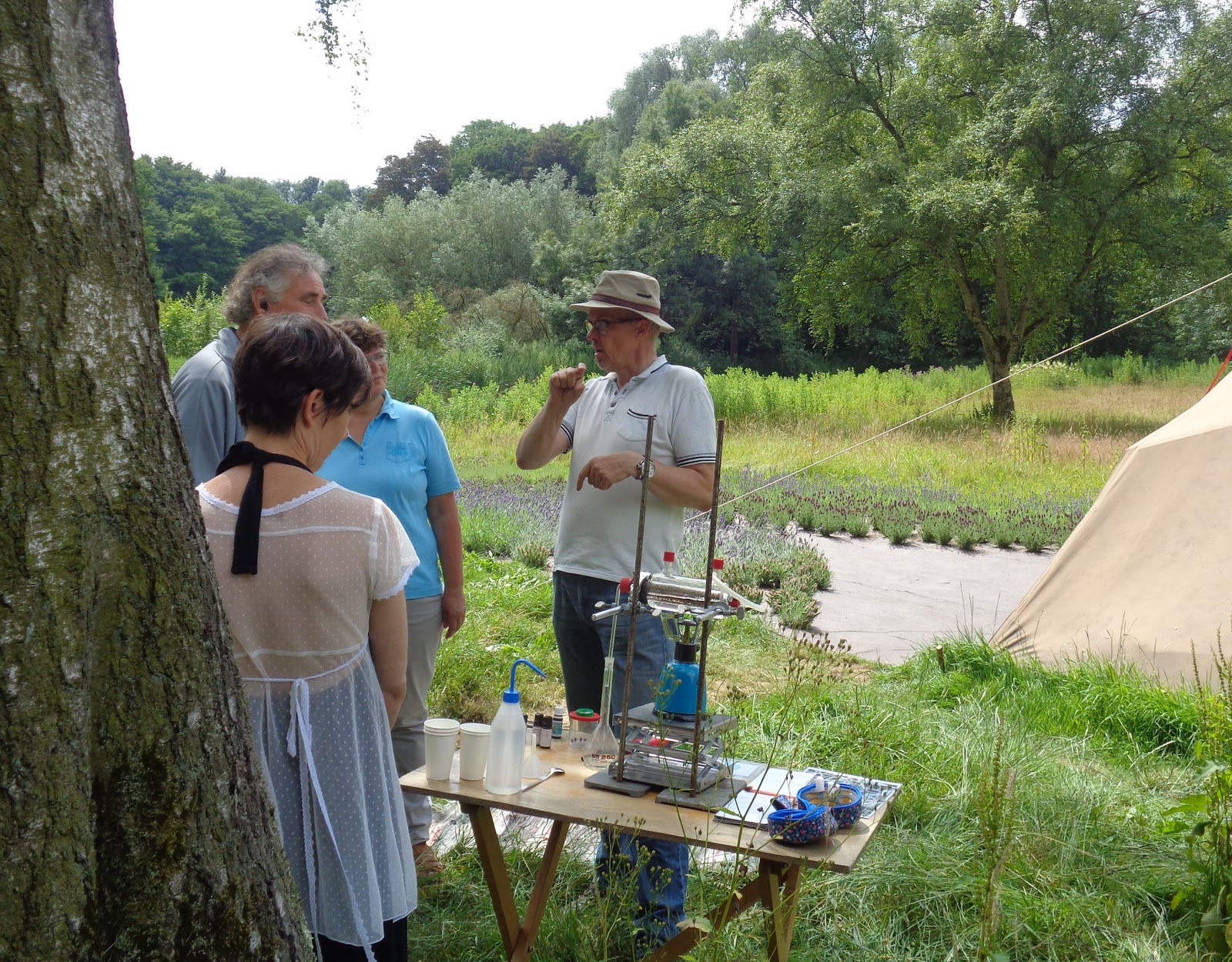 En een werkende stoomdestillatie van lavandinbloemen kunnen laten zien en vooral ruiken!