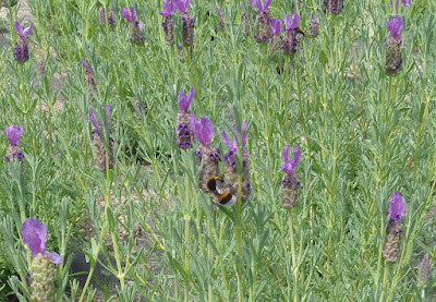 De lavendel stond nog volop in bloei, wat te merken was aan de vele bijen, hommels en vlinders die zich in het lavendelveldje ophielden.